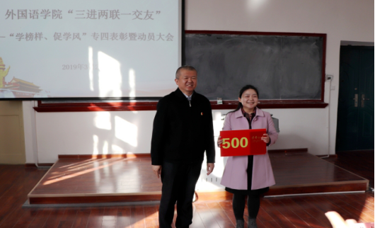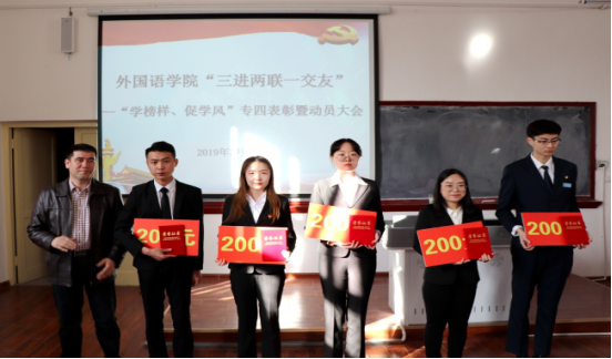 阿布都哈力克·吉热拉宣读了《擦边短剧 关于表彰英语专业四级考试一次通过学生的决定》。在2018年全国高校英语专业四级考试中,擦边短剧 2015、2016级有74名学生一次性通过英语专业四级考试,学院对成绩优秀1人、良好9人、合格64人予以表彰,并为获奖代表颁发了荣誉证书和奖金。