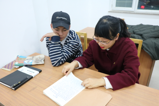 师生党员充分利用专业优势,一对一的辅导英语基础薄弱的孩子们,为他们提供有针对性的指导。