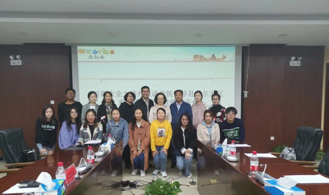 11月3日,马琴院长和阿布都哈力克副书记与克拉玛依市乌尔禾区委常委宣传部张彦军部长、克拉玛依十六中副校长刘莲云、瑞翔幼儿园园长张建梅、乌尔禾旅游局和教科局代表,以及学院2016级12名实习生一同进行交流座谈。