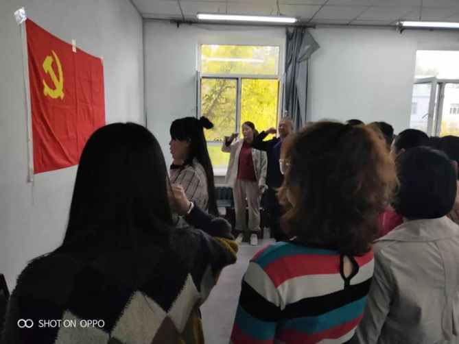 主题党日的第二个环节是重温入党誓词。全体党员面对鲜红的党旗,整齐站立,庄严举起右拳,一起重温入党誓词,用心去感悟先辈们舍生忘死,不屈不挠的革命献身精神。真正领悟到共产党员应该时刻牢记党员身份,强化党员意识,自觉履行党员义务,践行入党誓词,表达为党奋斗终生的初心。