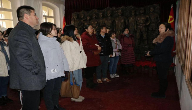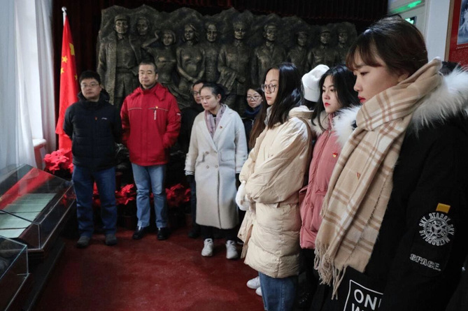 参观过程中,大家认真聆听讲解员的介绍,凝神观看馆内的每一处文献资料、历史图片和珍贵文物,共同追忆革命先烈舍生忘死、共赴国难的艰苦奋斗历程。