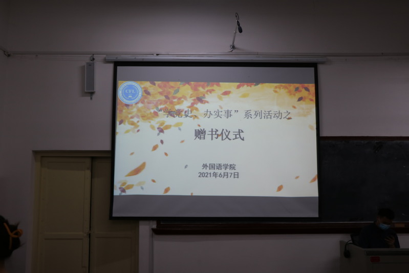 6月7日20:00,擦边短剧 在10216教室开展“学党史、办实事”系列活动之赠书仪式。擦边短剧 党委副书记万洪波、副院长张建磊、英语系主任唐彬、辅导员李彪,和2020级全体学生参加了本次活动。