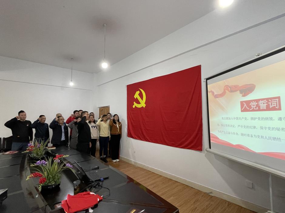 交流学习之后,两个支部的党员一起高举右手,面对党旗重温入党誓词。“我志愿加入中国共产党,拥护党的纲领,遵守党的章程,履行党员义务,执行党的决定,严守党的纪律,保守党的秘密,对党忠诚,积极工作,为共产主义奋斗终身,随时准备为党和人民牺牲一切,永不叛党。”一句句誓词雄壮豪迈,一声声誓言铿锵有力,全体党员再次接受入党誓词的洗礼,始终牢记宗旨,忠实履行高校教师教书育人的职责,在工作和生活中积极弘扬“二十大精神”