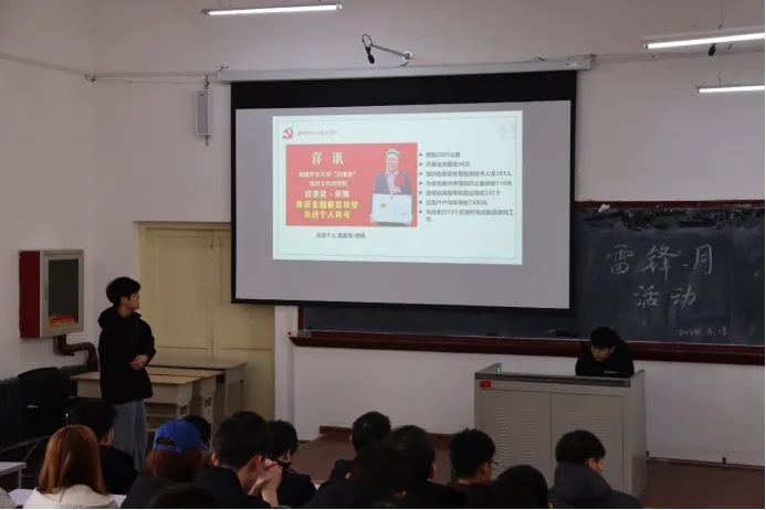 1、雷锋事迹宣讲:邀请志愿者宣讲团成员,向同学宣讲雷锋事迹,传播雷锋精神,观看相关电影片段。