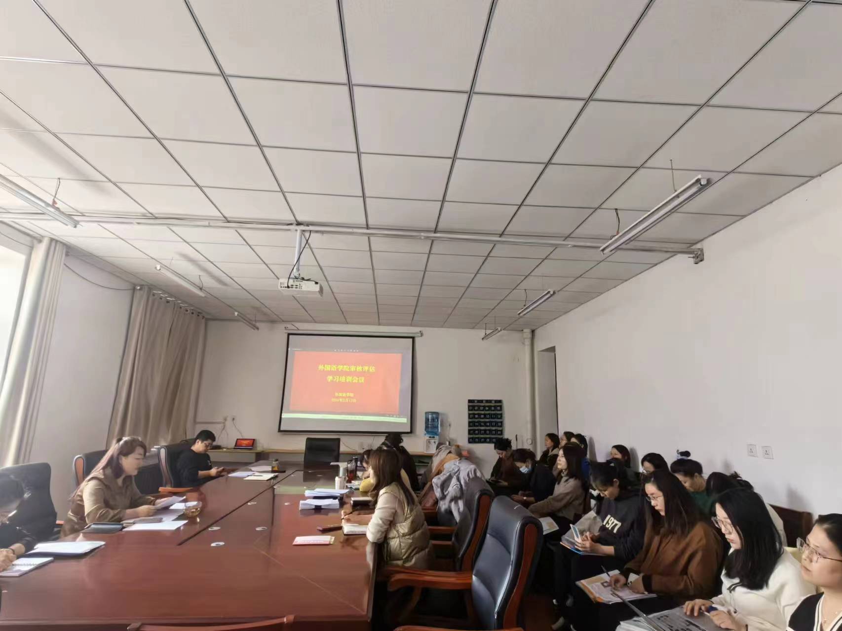在会议室召开本科教育教学审核评估学习培训会议,王婷副院长主持会议,全体教师参加会议。