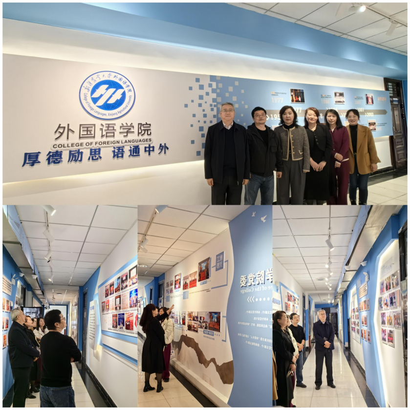 座谈会前,畅通书记代表学院对外语教学与研究出版社王海燕一行的到来表示热烈欢迎,并参观学院初步建成文化墙。王婷副院长从学院历史沿革、教学改革建设、学生风采等方面进行了详细的讲解。