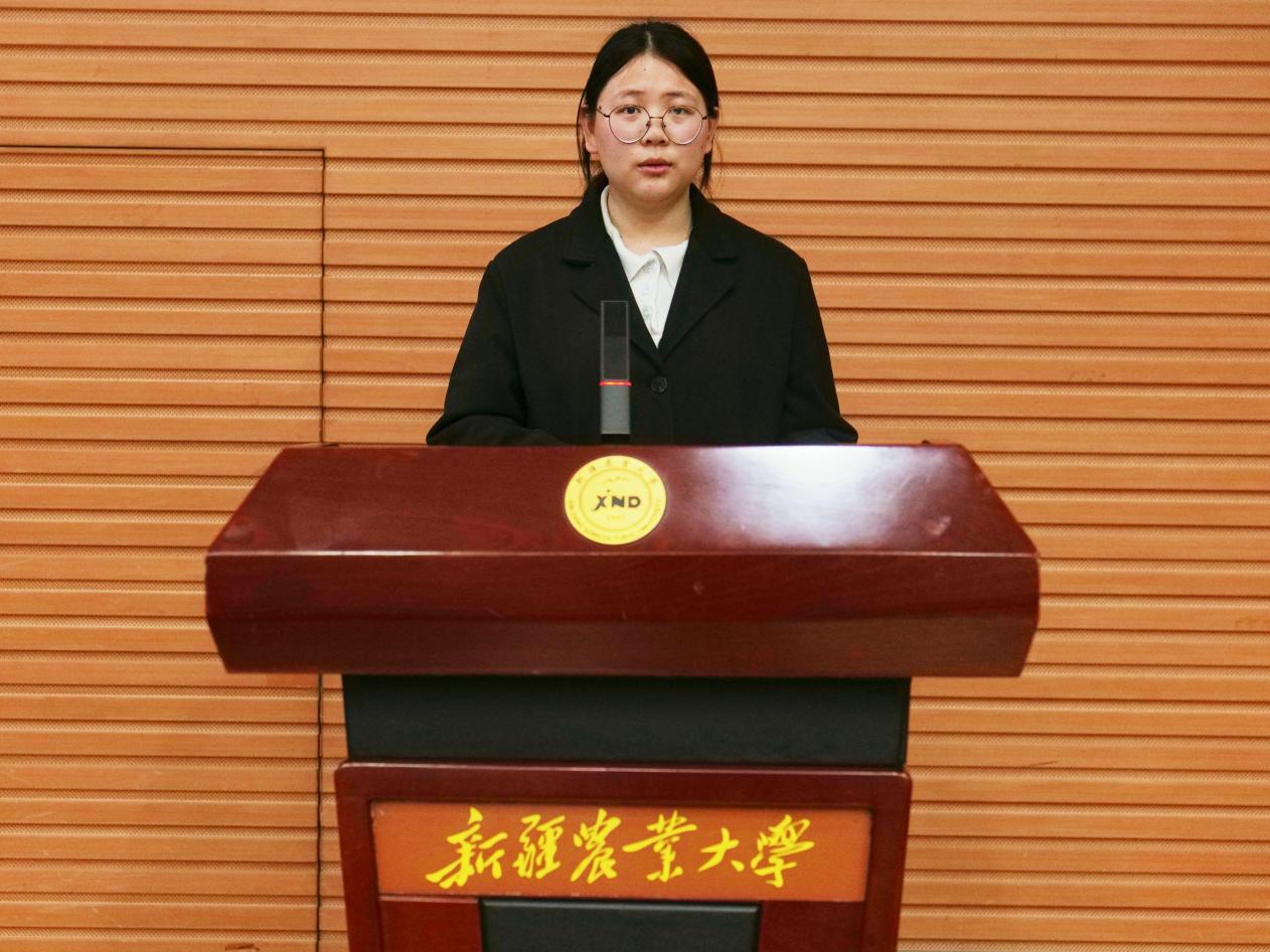 李永侠同学作为国家励志奖学金获得者代表、高虹同学作为“三好学生标兵”获得者、马雪峰同学作为学生代表、安美琳同学作为“耕读教育先进个人”代表依次发言。