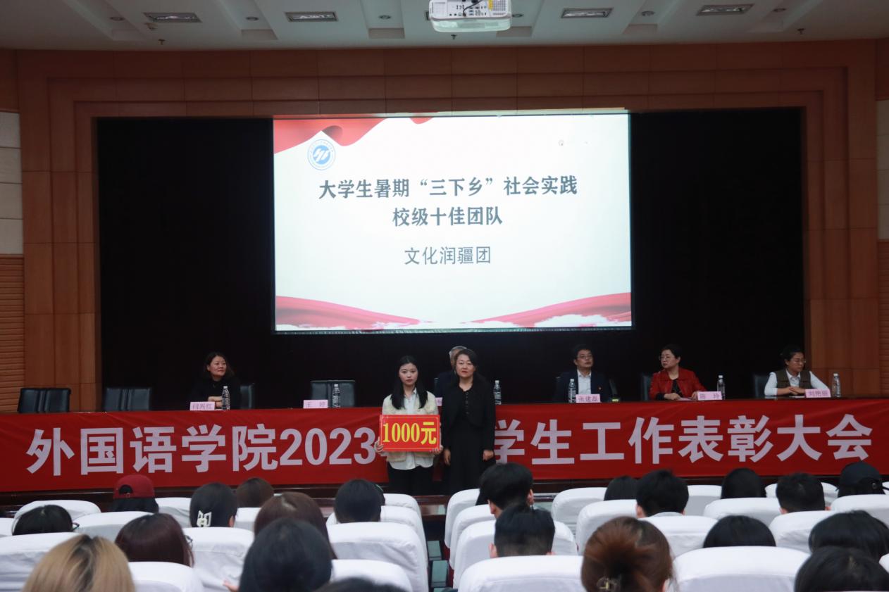 副院长王婷老师为“大学生暑假‘三下乡’社会实践十佳团队”颁奖