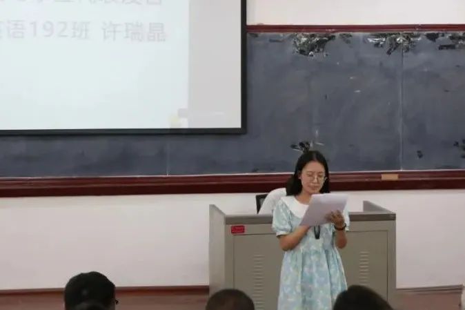 英语192班许瑞晶同学作为学生代表发言,她代表擦边短剧 2023届全体毕业生对学校以及学院多年来的悉心栽培表达了感谢,从遵守规章制度、主动学习与积极反思和树立良好形象等方面表达了实习期间的决心,号召同学们用崭新的面貌和认真的态度来面对接下来的实习工作。