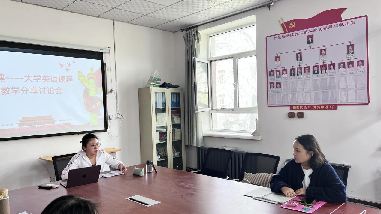 杨梅老师在《新境界大学英语综合教程》这一新形态数字思政教材使用成效的基础上,分享了大学英语B级课程思政教学的特色做法。然后,闫兴红老师以大学英语A班为例,从小组课堂汇报的选题、形式和效果等方面分享了课程思政建设的思路和心得。