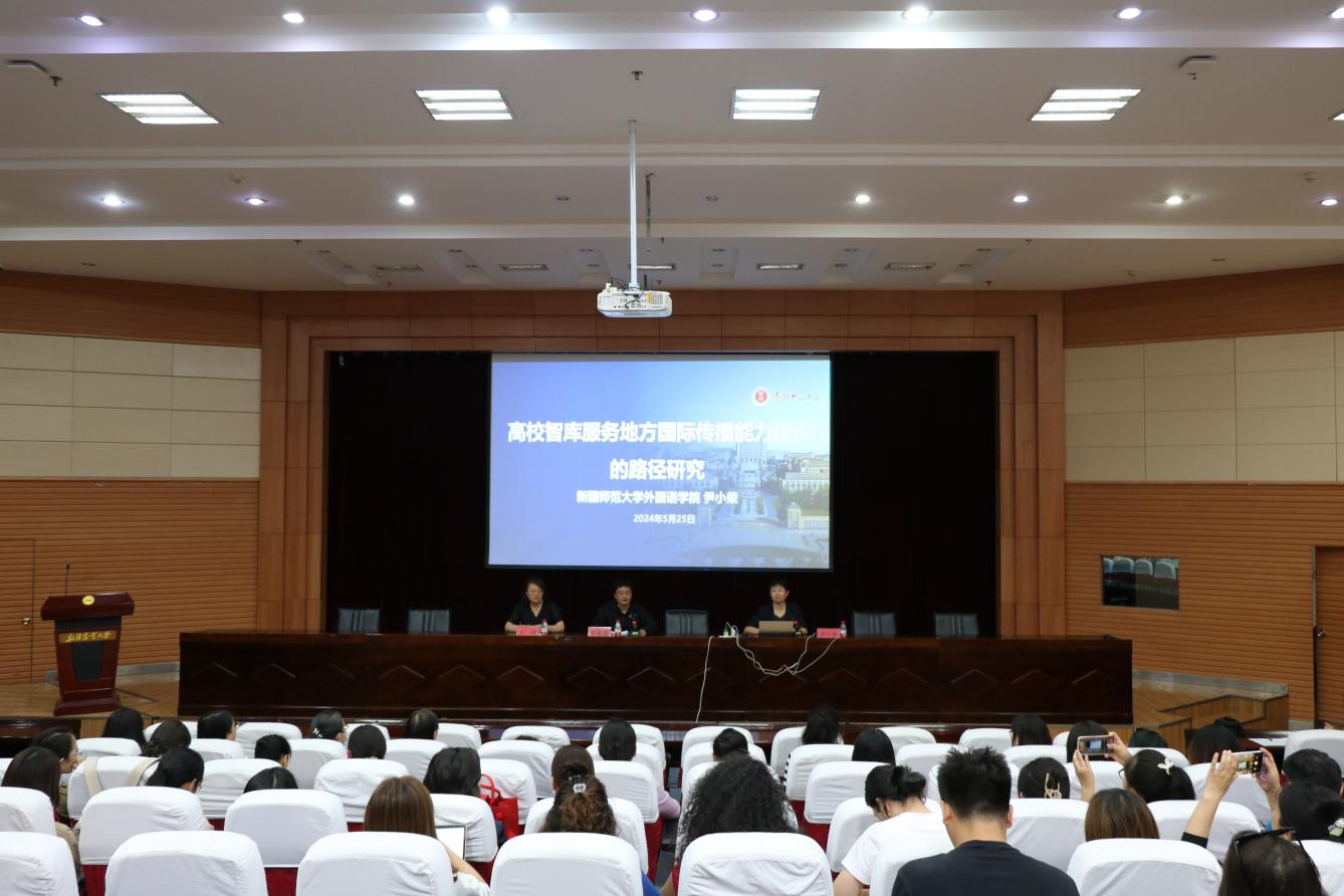 尹小荣教授从地方国际传播能力建设研究缘起、高校智库如何服务国际传播能力建设、地方高校如何服务地方国际传播能力建设等方面进行深入讲授;同时,以新疆师范大学新疆国际传播研究中心建设为案例,生动详细向与会教师阐述高校智库服务地方国际传播能力建设框架体系及实施路径。