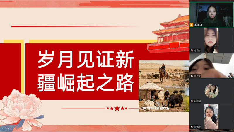 英语2403班李子宜同学以“新疆七十年:从边疆之地到发展热土”为题,结合家族相册的新旧对比,用英语讲述了家乡在交通、教育、生态等方面的巨变——从昔日的土路到如今的高速公路,从简陋的教室到现代化的校园,从戈壁荒滩到绿洲田园,让听众真切感受到新疆的沧桑巨变与蓬勃生机,言语中满是对家乡的热爱与骄傲。
