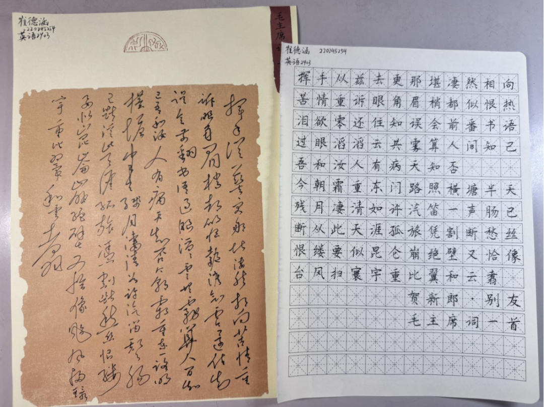 书法之美,跃然纸上。本次活动让学院满溢墨香、更添人文温度,不仅营造了独属于外语学院的学术文化氛围,更让书法这一传统文化在新时代焕发出新的色彩,成为涵养学院人文气息的生动注脚。