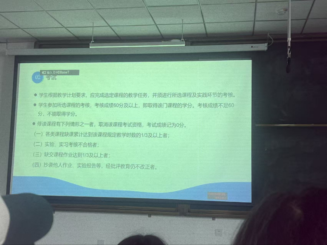 黄老师直击重点,明确了获得学士学位的要求,还讲解了考试的相关要求考核,她特别区分了“重修”与“补修”,她说 “因转专业、交流等原因未修过的课程,需要补修。而素质教育选修课如果不及格,不能补考或重修,但可以通过选修其他同类课程来弥补学分。”她再次强调了平均学分绩点(GPA) 的重要性,它是衡量学习质量、关乎学位审核与未来发展的核心指标。