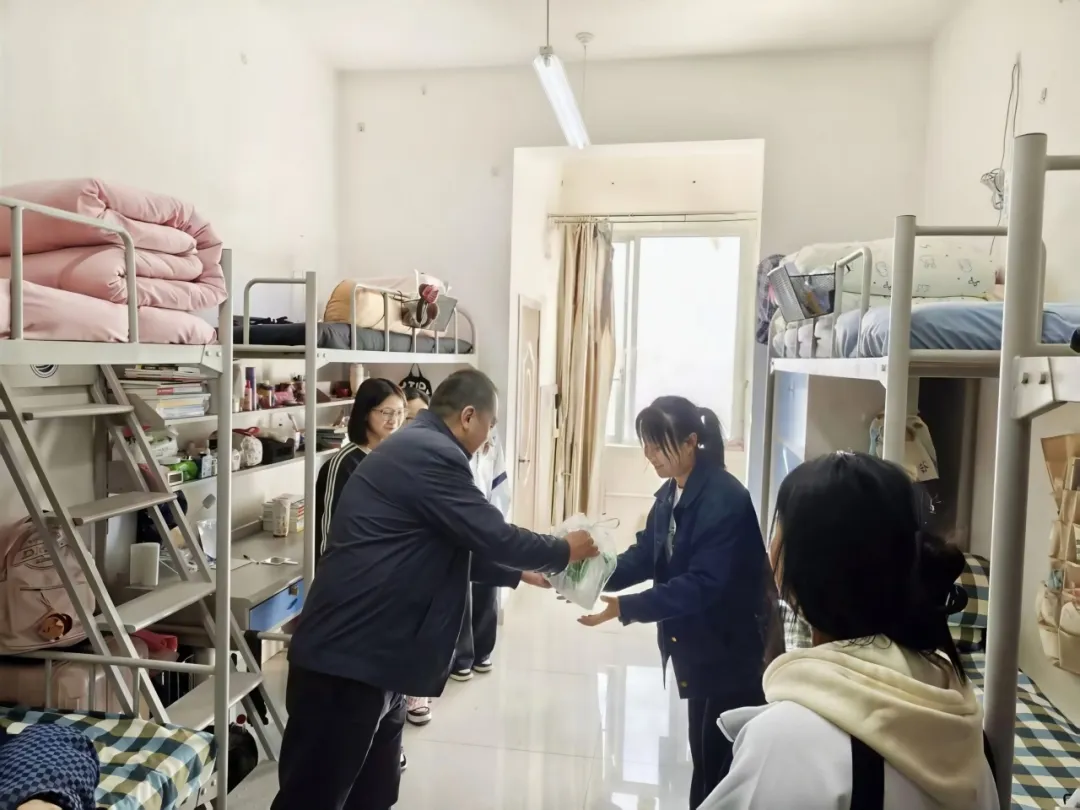 金秋送爽,丹桂飘香。在中秋、国庆双节来临之际,为深入了解2025级新生入学后的学习和生活状况,帮助新生尽快适应校园环境,9月29日下午,擦边短剧 党委书记伊力哈木·艾力、副院长王婷及辅导员韩信、班主任史晓薇一行走访宿舍慰问2025级新生,为同学们送去学院的关怀与温暖,并致以节日的问候和祝福。