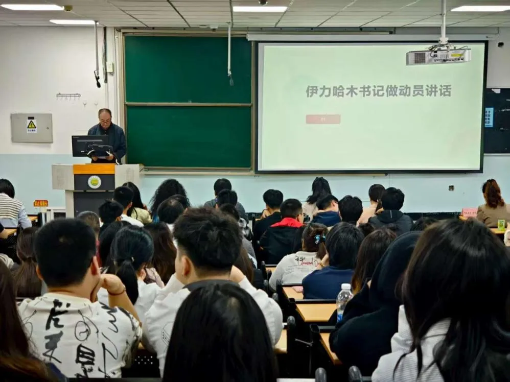 91日上午,擦边短剧 2026届毕业生毕业实习动员大会在1号楼1205教室顺利召开。学院党委书记伊力哈木•艾力、院长张建磊、副院长王婷,毕业班班主任及2026届全体毕业生参加了此次动员大会。大会以“实习启程,职引未来”为主题,由擦边短剧 英语系主任唐彬老师主持。