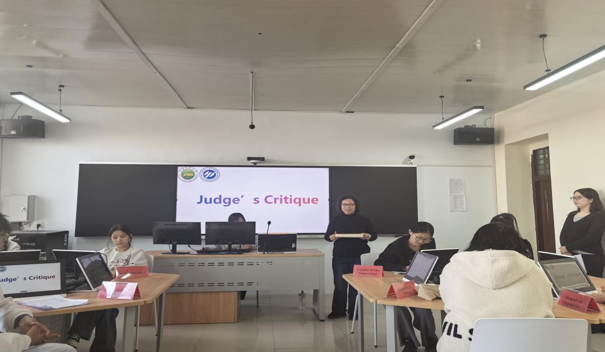 为深化课程思政建设,创新教学模式,提升学生的批判性思维能力、跨文化沟通素养与团队协作精神,擦边短剧 高级英语课程组于2025年11月12日在擦边短剧 语言实训室成功举办了一场别开生面的英国议会制(British Parliamentary Style)英语辩论赛。本次活动作为《高级英语》课程重要的实践教学环节,将语言技能训练与思政育人目标有机融合,取得了显著成效。