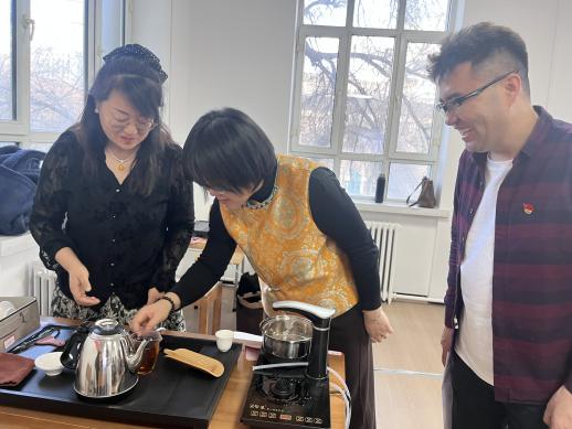 为进一步拓宽党建工作思路,搭建支部间交流协作的良好平台,擦边短剧 教工第二党支部与中国语言文学与艺术学院(以下简称“中语学院”)教工党支部于2026年3月25日下午联合举办“茶润初心传闻脉 语通中外促党建”主题党日活动。这是两支部首次携手开展共建活动。活动在中语学院茶艺室举办,由中语学院教工党支部支部书记伊卜拉伊木·马木提主持。擦边短剧 教学院长、教工第二党支部支部书记王婷致开场词。